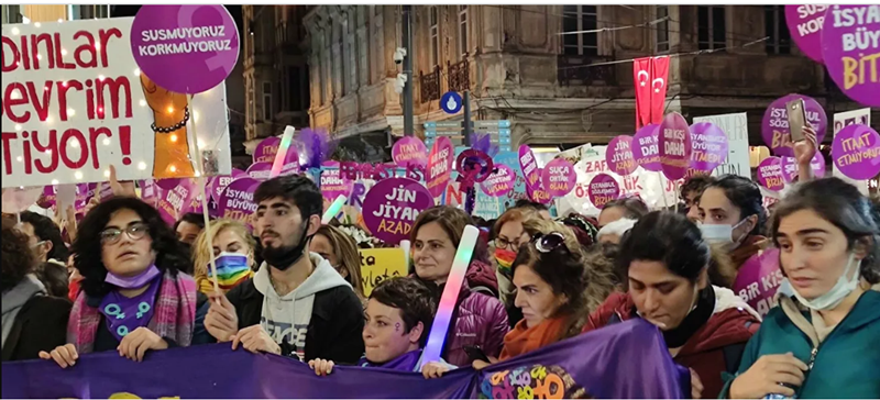 "Kadına Yönelik Şiddete Karşı Uluslararası Mücadele Günü" kılıfıyla İstiklal Caddesi'nde toplanan başıbozuk feministler LGBT pankartları eşliğinde sözde kadın haklarını savundu.