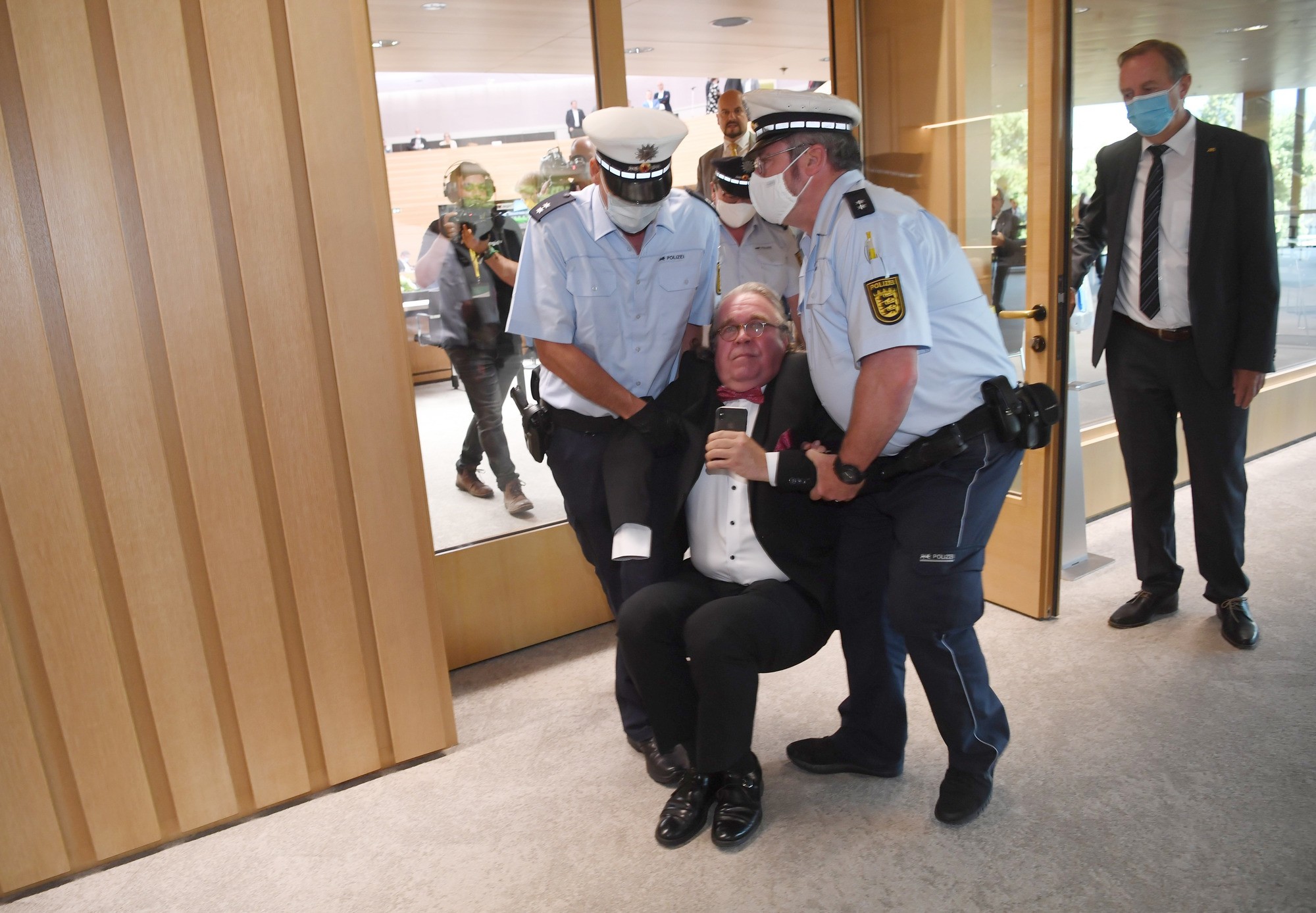 Almanya Stuttgart'ta Milletvekili Heinrich Fiechtner kendisi Meclis'ten çıkmayınca polisler iki kolundan tutarak zorla çıkarmıştı.