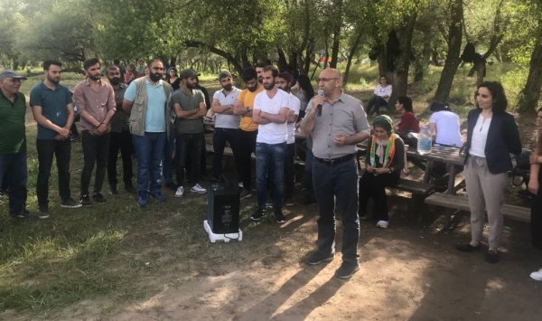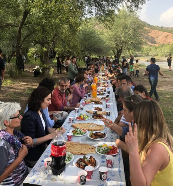 Seçim çalışmalarını devam ettiren HDP'liler, dağa çıkıp mangal yaptı. HDP'lilerin arasında terörist cesetlerinin başındaki fotoğrafıyla akıllara kazınan Alican Önlü de katıldı.