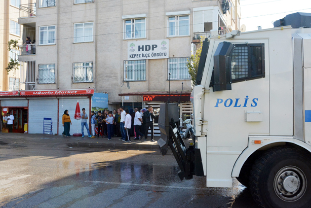 HDP Kepez İlçe Örgütü önünde toplanan bir grup, göz altıları ve tutuklanmaları protesto etmek için oturma eylemi yapmak istedi.