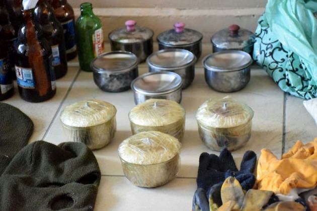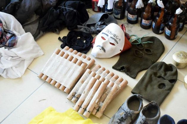 "Depoda kullanıma hazır 6 molotofkokteyli, 10 molotofkokteyli hazırlanmasında kullanılan boş şişe, çok sayıda molotofkokteyli fitili, 4 metal kap içinde kullanılmaya hazır el yapımı patlayıcı, 7 el yapımı patlayıcı hazırlanmasında fitil yerleştirmek için delinmiş metal kap, 4 ile 5 kilogram arasında patlayıcı madde, 1 teneke barut, el yapımı patlayıcı tıpası olarak kullanılan 300 gram ham pamuk, 5 patlamış havai fişek düzeneği, sokak eylemlerinde kullanıldığı değerlendirilen 2 kar maskesi, üzerinde PKK-YDG-H yazılı plastik yüz maskesi, 6 eldiven, yüzlerin kapatıldığı 10 poşu ve atkı, çok sayıda erkek ve kadın kıyafeti, 2 çift spor ayakkabısı, üzerinde terör örgütü PKK elebaşı Abdullah Öcalan'ın resmi olan 50 bez flama ve 10x25 metre ebadında poster ele geçirilmiştir."