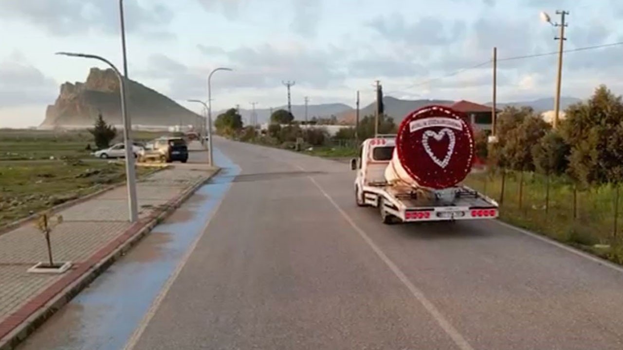 Araç platformu büyüklüğünde hazırlanan aranjman, özellikle ilçe merkezindeki ana arterlerde dikkat çekti. Aracı yollarda görenler cep telefonlarına sarıldı. Genç çiftler ve aileler dev kalbin önünde hatıra fotoğrafları çektirirken, sosyal medyada paylaşılan görüntüler kısa sürede yayıldı.