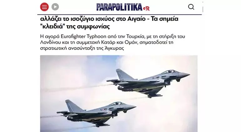 Parapolitika, “Türkiye’nin Eurofighter alımı Ege’deki güç dengelerini nasıl değiştirecek” başlıklı haberinde şu ifadelere yer verdi: