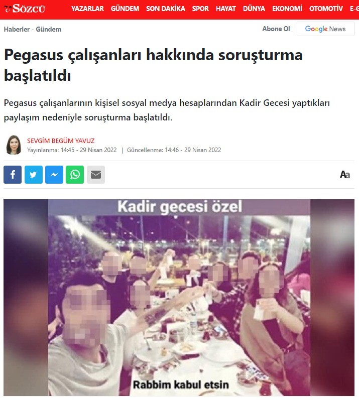 ‘Fondaş’ ve CHP yandaşı medya, Kadir Gecesi’nde haddini aşan Pegasus çalışanlarına ait fotoğraflarını mozaikleyerek aynı zihniyette olduklarını ortaya koydular. En ufak bir olayda bir Müslümanı suçladıklarında iftira attıklarında veya kendi kafalarında olmayan birini suçladıklarında fotoğraflarını çarşaf çarşaf veren sol medyanın kirli zihniyeti bir kez daha belli oldu.
