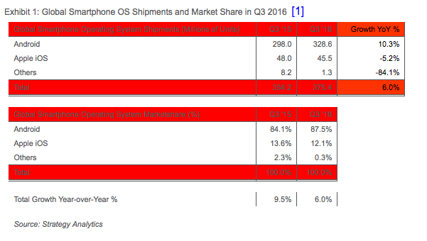 Google, mobil işletim sistemi pazarında liderliğini korumaya devam ediyor. Her ne kadar telefon denilince akla ilk olarak gelen iPhone olsa da; iOS işletim sistemi sadece kendi telefonlarında kullanılabiliyor. Google zaten uzun süredir mobil işletim sistemi konusunda dünya lideri durumundaydı fakat Apple'in Pazar payının azalması ile kendi rekorunu kırmaya devam ediyor. Araştırma sonuçlarına göre Android dünya genelinde Eylül ayı sonunda akıllı telefon satışlarındaki pazar payını yüzde 87.5'e çıkartmayı başardı. Strategy Analytics tarafından paylaşılan araştırma sonuçlarına göre dünya üzerinde her 10 mobil cihazdan 9'u Android işletim sistemi yüklü. Bu da android işletim sisteminin yeni rekoru olarak kayıtlara geçmiş durumda.