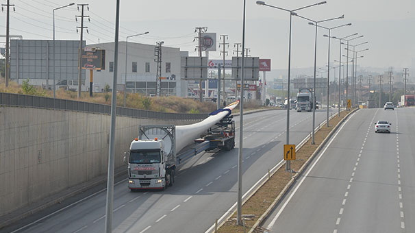 Her biri 68 metre uzunluğunda ve 17 ton ağırlığında olan üç kanat parçasını taşıyan TIR’lar Çorum'dan geçti.
