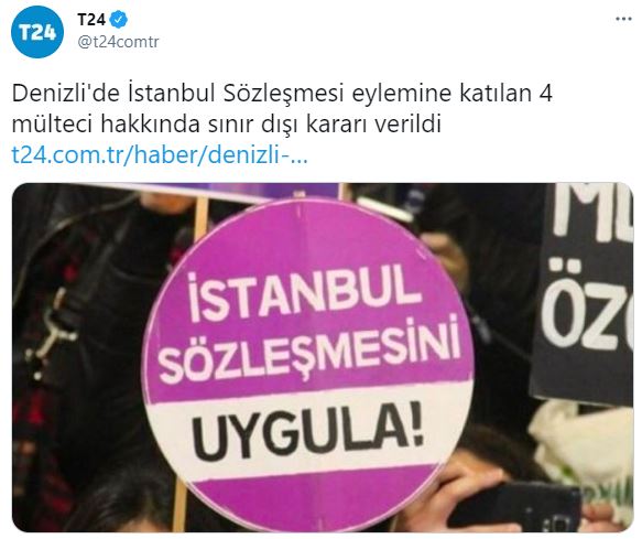 Denizli'de İstanbul Sözleşmesi’nin iptaline karşı yapılan eyleme katılan İranlı 4 mülteci 'Kamu düzenini bozmak' gerekçesiyle gözaltına alındı. Mülteciler hakkında sınır dışı kararı verildi.