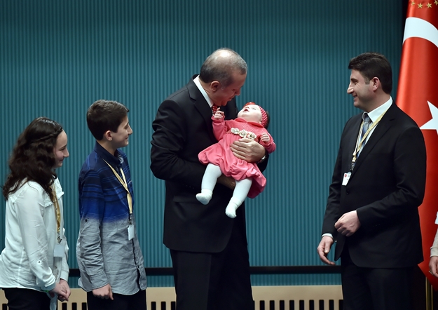 Madalyasını almak için sahneye tekerlekli sandalye ile çıkan Gazi Jandarma Komando Er Yavuz Papağan, Cumhurbaşkanı Erdoğan'ı, Muş'ta yapılacak nikah töreni davet etti. Cumhurbaşkanı Erdoğan, sahneye çocuklarıyla çıkan gazilerin bazılarına 3 çocuk tavsiyesini hatırlattı.