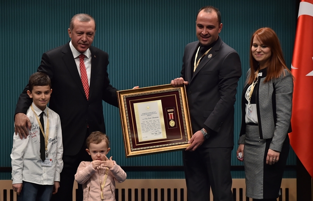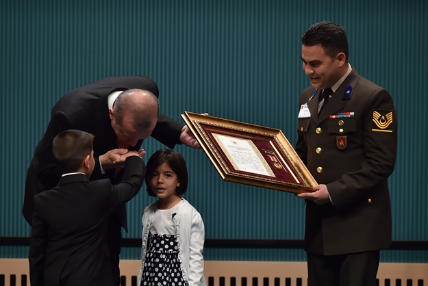 Konuşmasının ardından Erdoğan, Ankara'da ikamet eden 27 şehit yakını ve gaziye Devlet Övünç Madalyalarını tevcih etti.