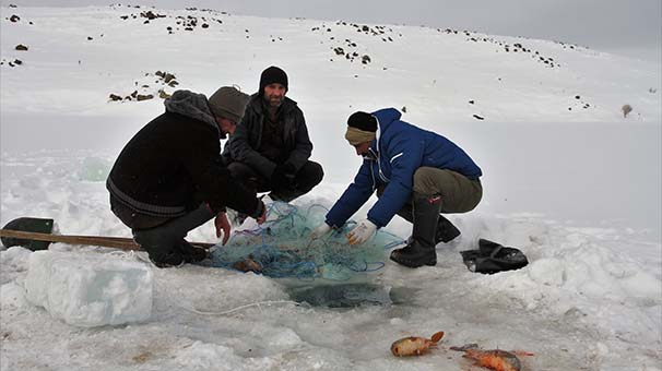 Balıkçı Haşim Özdemir ise buz tutan gölde balık avlanmanın tehlikeli olduğunu ifade ederek, "Yaptığımız iş çok zor ama çalışmak zorundayız. Çünkü geçimimizi balıkçılıkla sağlıyoruz." diye konuştu.
