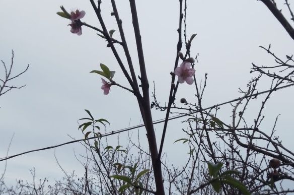 Karabük'te vatandaşlar kar yağışı beklerken şeftali ağaçları çiçek açtı.
