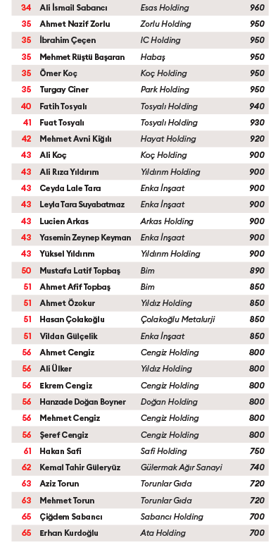 Zirvede yine Murat Ülker’in yer aldığı listeye dört isim ilk kez girdi.