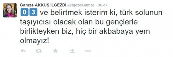 Gamze İlgezdi de bugün iddialara cevap vermek için Twitter hesabı açtı ve şunları yazdı: "Şahsıma yapılan bu linç girişimi gösterdi ki Mustafa Kemal'in yürekli askerleri varmış. Ve belirtmek isterim ki, Türk solunun taşıyıcısı olacak olan bu gençlerle birlikteyken biz, hiçbir akbabaya yem olmayız!"