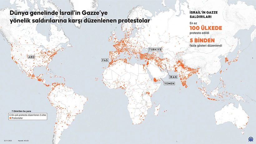 En fazla gösteri düzenlenen ülkeler ise Türkiye, ABD, Fas, İran ve Yemen oldu.