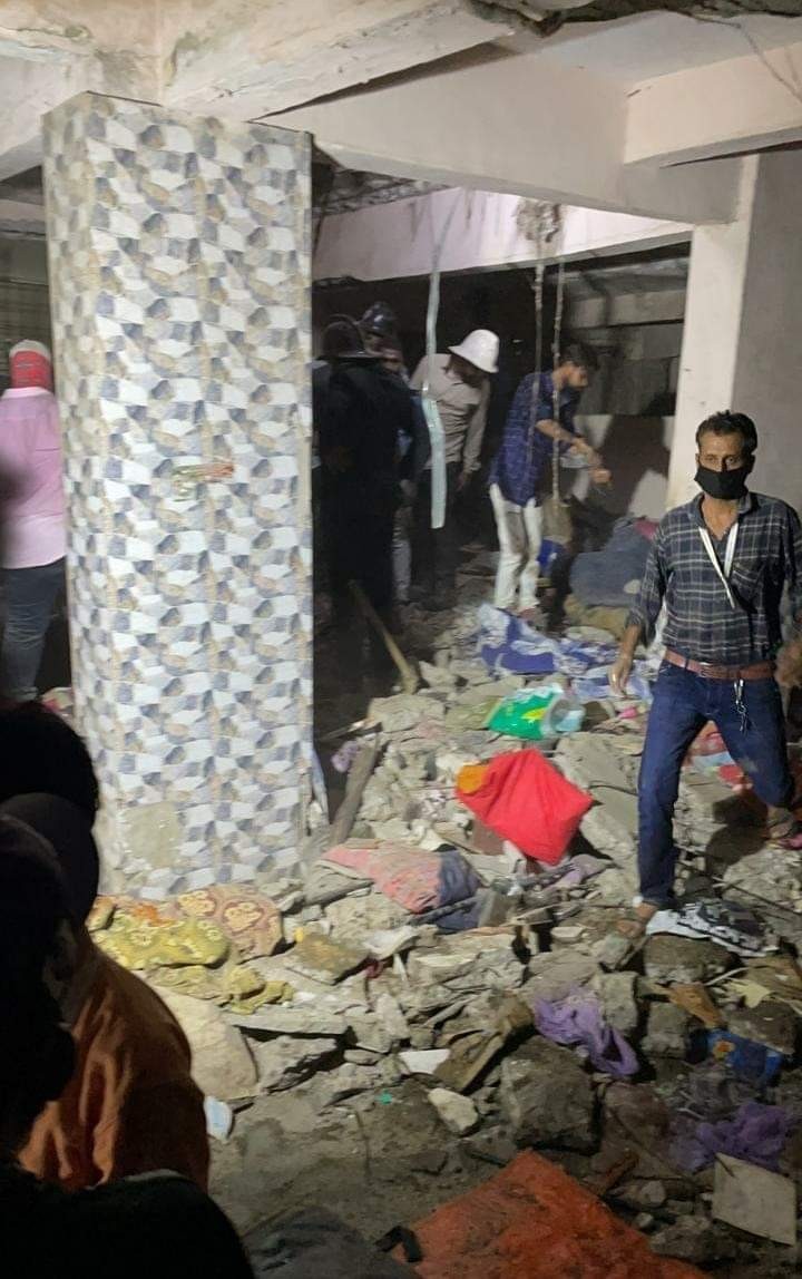 Sai Siddhi adlı binanın çökmesinin ardından olay yerine belediye ve itfaiye ekipleri sevk edildi.