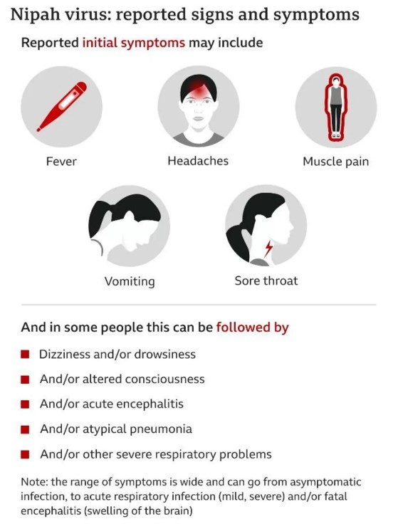 Dünya Sağlık Örgütü'ne (WHO) göre Nipah virüsü enfeksiyonu, domuz ve meyve yarasası gibi hayvanlardan insanlara bulaşan "zoonotik bir hastalıktır".