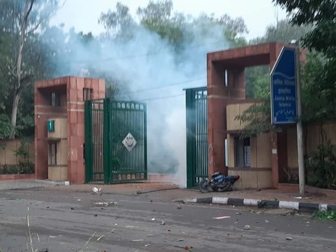 Delhi polisi, başkentteki Jamia Millia İslamia Üniversitesine izin almadan girerek öğrenci ve üniversite çalışanlarına biber gazı ve gerçek mermilerle müdahalede bulundu.