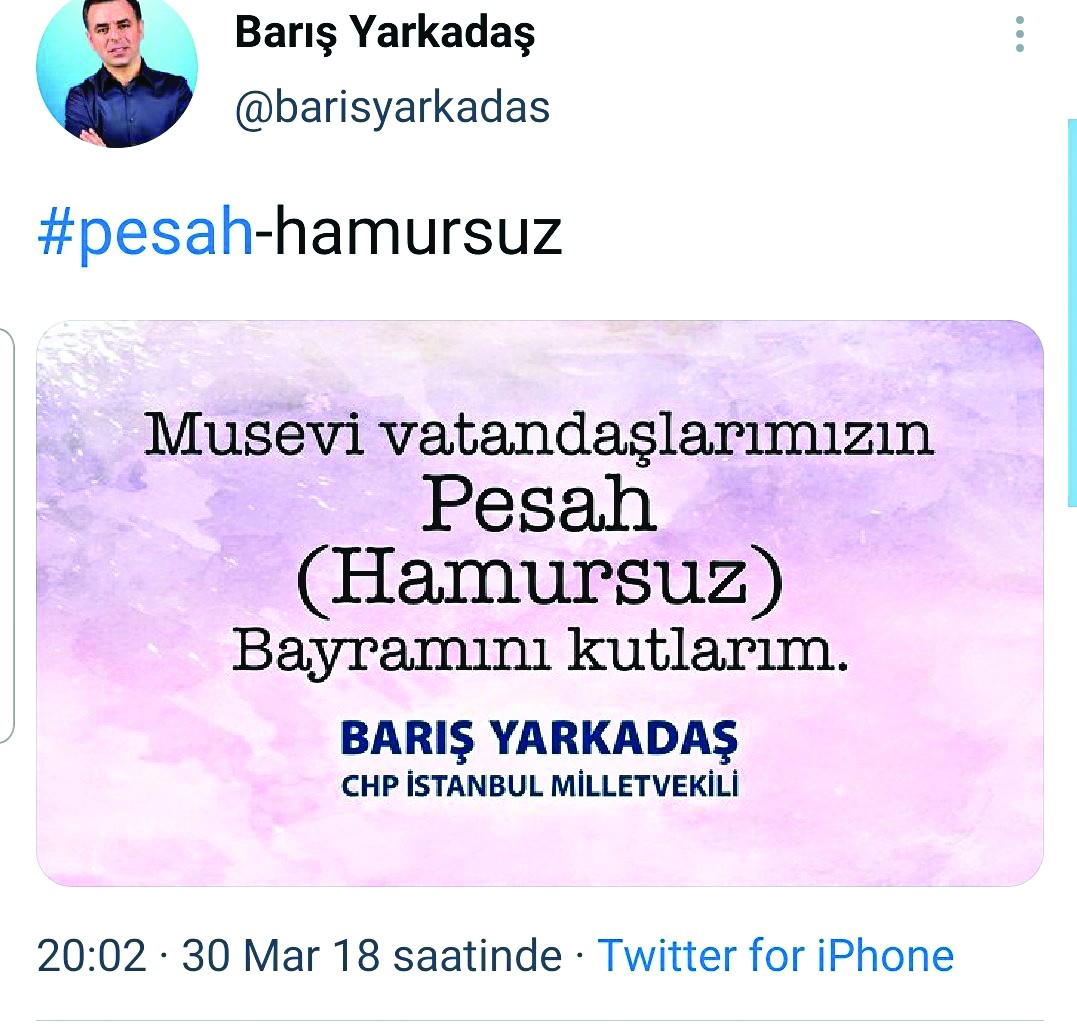Müslüman Türk milletinin kadim değerlerine düşmanlık besleyen CHP zihniyeti, zehirli diliyle yeniden nefret saçmaya başladı. Hıristiyanların Paskalya, Musevilerin Pesah Bayramını kutlayan, marjinal terör örgütü üyelerinin açlık grevlerini destekleyen CHP’li Barış Yarkadaş, oruç açan futbolculara kin kustu.