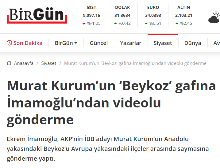 Murat Kurum'un Beykoz'u Avrupa Yakası'nda dediğini iddia eden İmamoğlu'nun fonladığı medya yaptığı haberlerle komik duruma düştü.