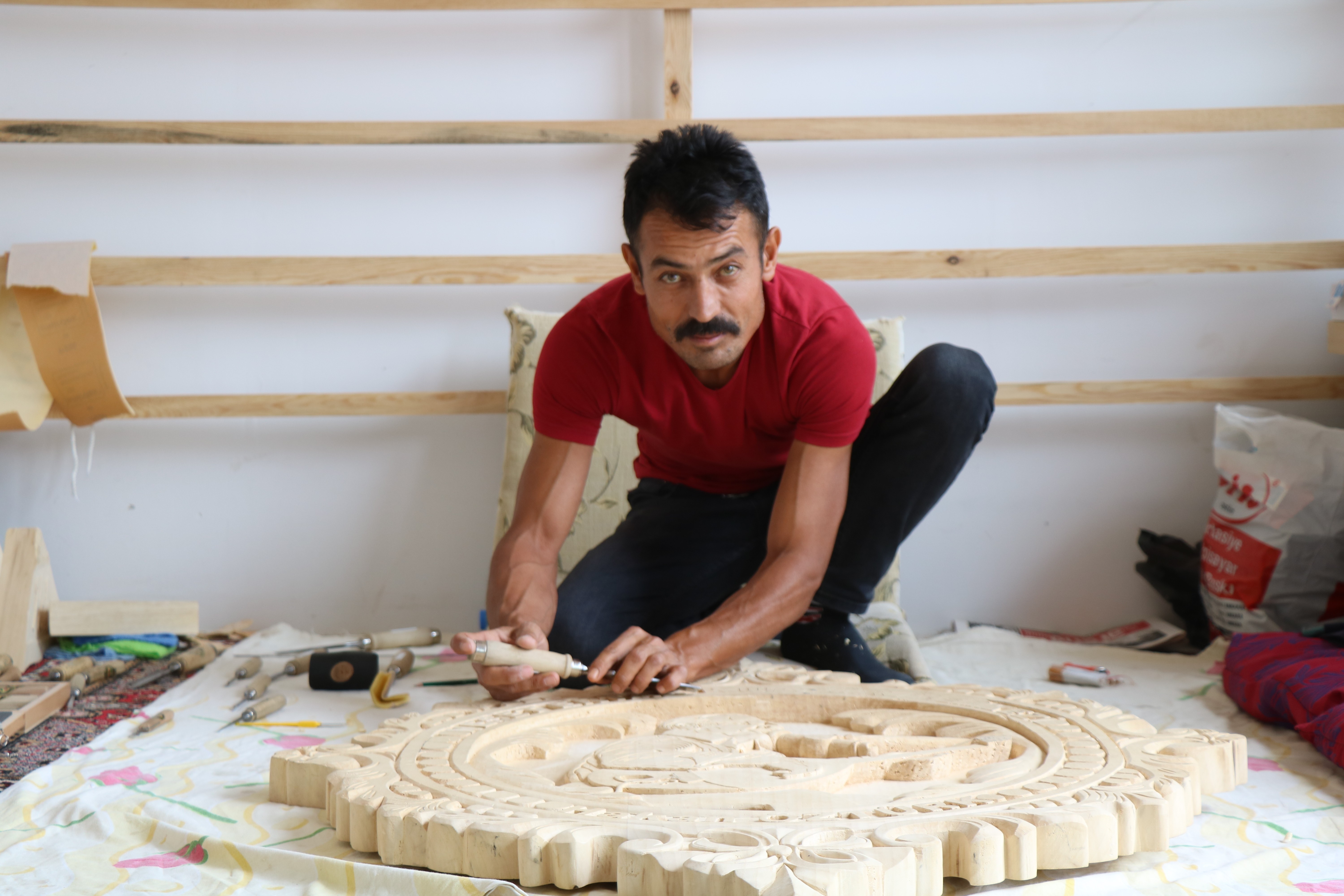 Kırşehir’in Çiçekdağı ilçesinde amatörce başladığı ahşap oyma ve boyama işlerini geliştirerek mesleğe dönüştüren Hakan Öztürk, külliye alanında kendisine gösterilen ilgiden memnun.