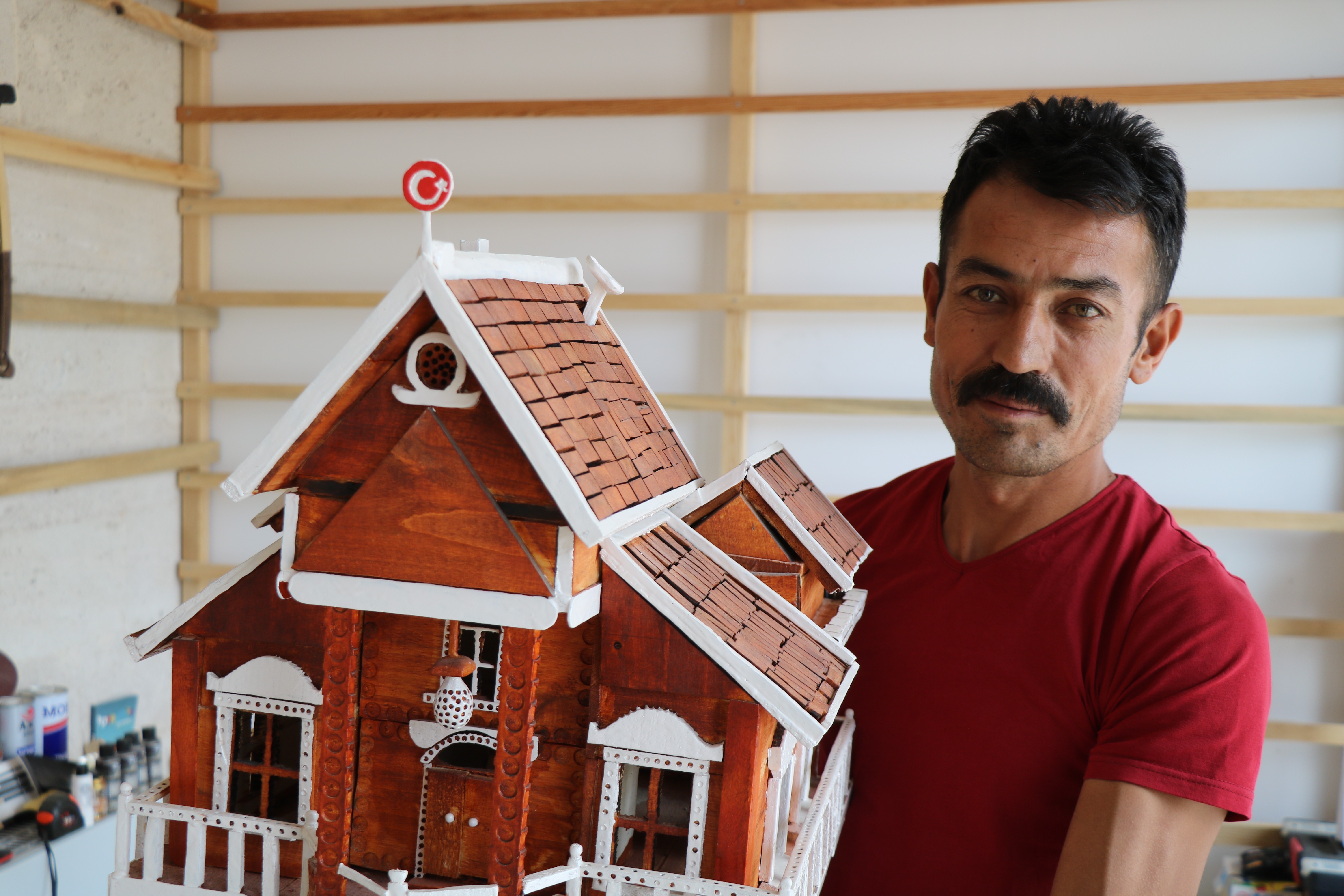 Kıl testeresi ve yapıştırıcı kullanarak ev modelleri inşa eden Öztürk, “Sadece kıl testeresi ve yapıştırıcı kullanarak farklı modellerde evler inşa ettim. 400 parçadan oluşuyor. Ev yapımları ise 2 aydan fazla zaman aldı” ifadelerini kullandı.