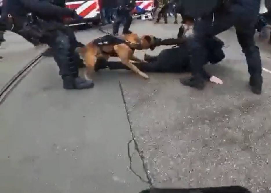 Avrupalı Türkler isimli sosyal medya hesabından yayınlanan görüntülerde, polis köpeklerinin göstericileri ısırdığı, polislerin ise hiç acımadan göstericilere copla vurduğu görüldü.