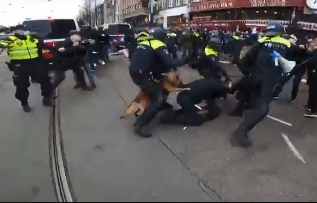 İki yıldır dünyayı etkisi altına alan Kovid-19 pandemisine karşı ülkeler çeşitli kısıtlamalara giderken Hollanda da yaşanan kısıtlamalara karşı barışçıl şekilde protesto eden vatandaşlara, polisler cop ve köpeklerle müdahale etti.