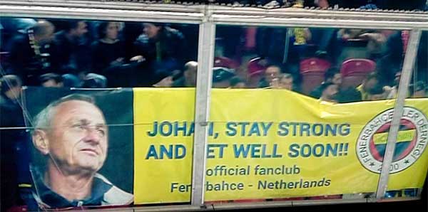 Geçtiğimiz haftalarda kansere yakalandığı ortaya çıkan ve akciğer kanseri teşhisi konulan Hollanda futbolunun efsane ismi için Türk taraftarlar, "Johan, güçlü ol ve hemen iyileş" yazısının üzerinde olduğu bir pankartı tribünlere astı.