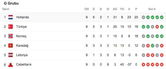 16 Kasım Salı günü De Kuip'de 22.45'te başlayacak karşılaşma, S Sport2'den canlı yayınlanacak. Hollanda'nın 20, Norveç'in ise 18 puanı var.