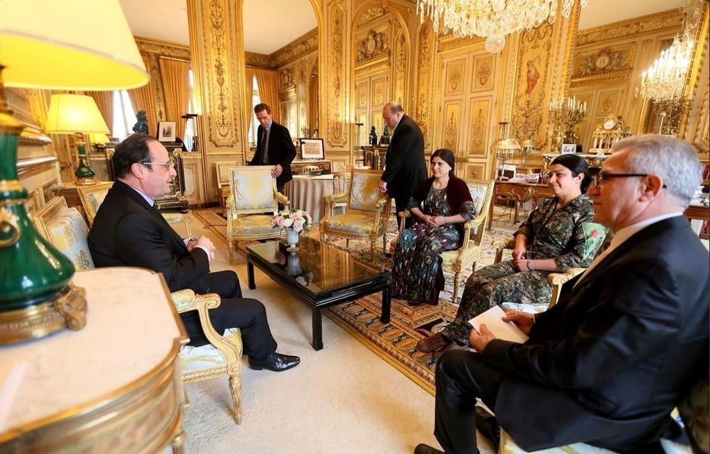 PYD/PKK Eşbaşkanı Asiya Abdellah ile PYD/PKK'nın kadın ve çocuklardan sorumlu yetkilisi Nassrin Abdalla'nın görüşmede Hollande'dan, IŞİD'e karşı daha etkili savaşabilmek için Fransa'nın silah ve lojistik desteğini istediği bildirildi.