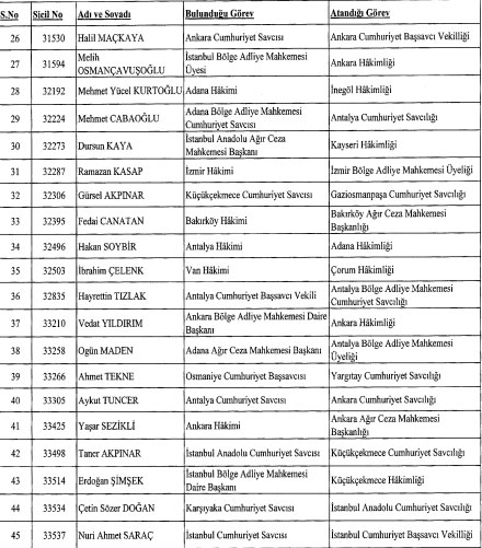 Resmi Gazete HSK hakim savcı atama listesi için tıklayın