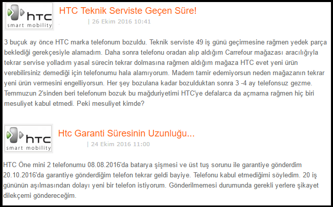 Bu ve bunun gibi HTC Türkiye hakkında birçok şikayet bulunuyor. Tayvan'da bulunan merkezin Türkiye ofisi için ne karar vereceği henüz bilinmiyor. Fakat işlerin direkt merkez tarafından yönetilmesi, HTC kullanıcılarını bezdirmiş durumda.