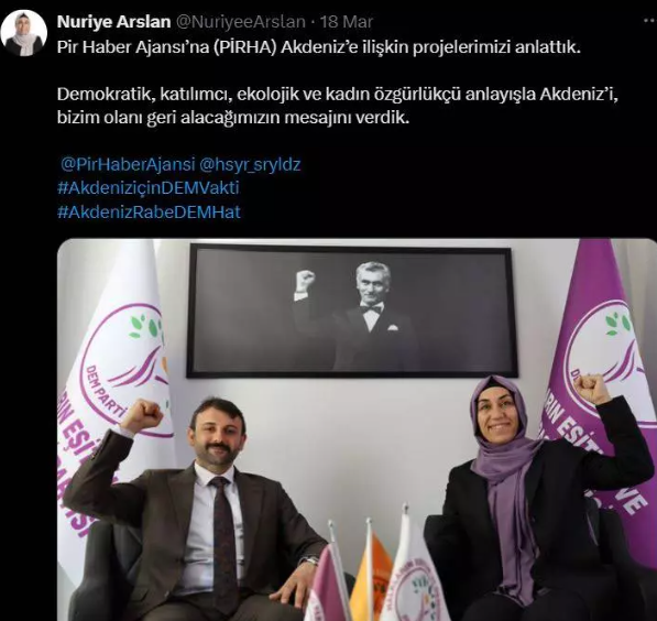 Musa Arslan’ın da DEM Parti'li Akdeniz Belediye Başkan adayı Nuriye Arslan’ın oğlu olduğu öğrenildi.
