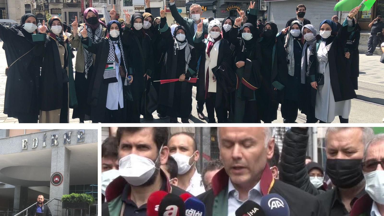 İsrail'in Filistinlilere yönelik saldırıları Hukukçular Derneği tarafından Türkiye'nin birçok noktasında, eş zamanlı olarak protesto edildi.