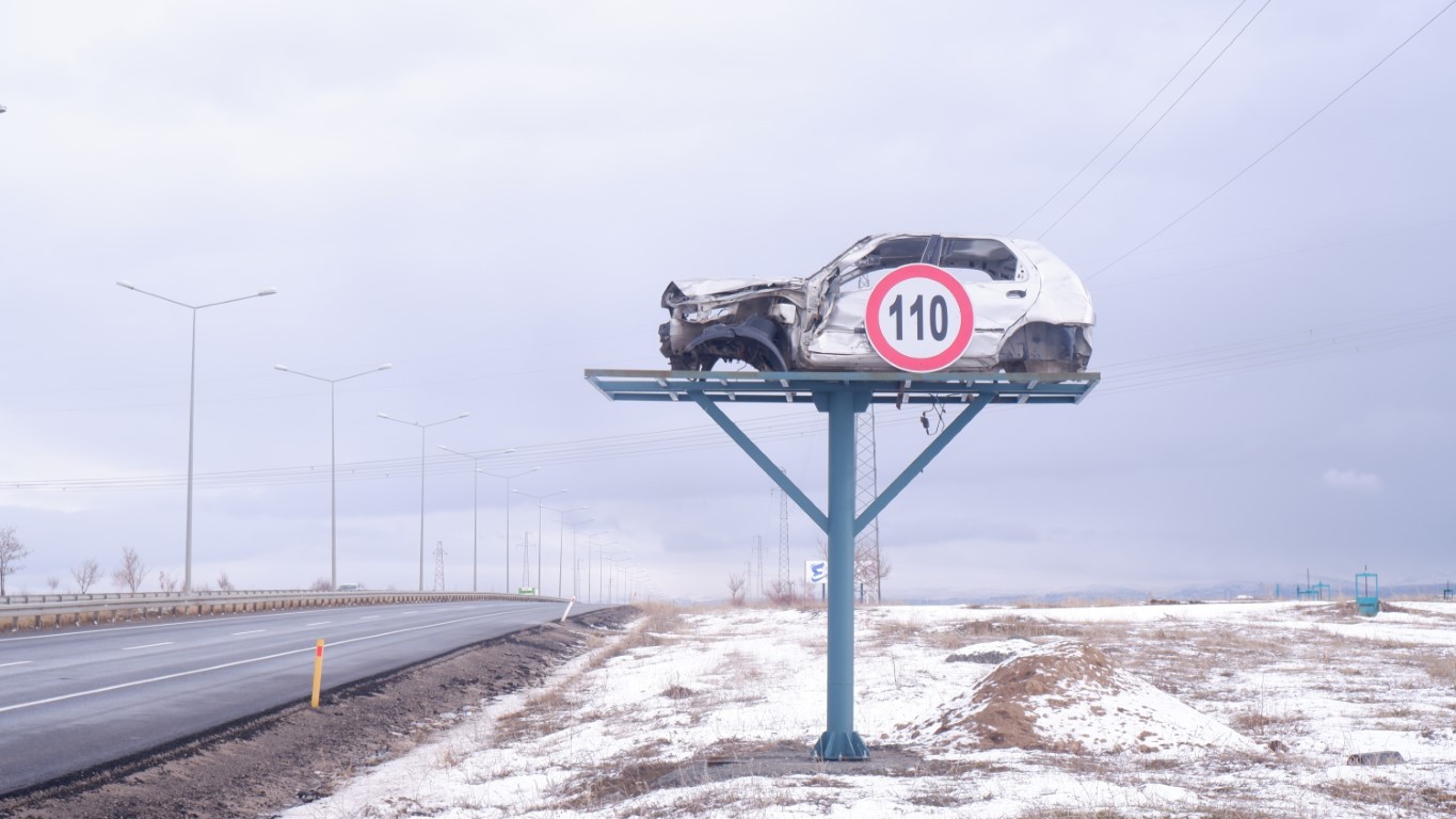 Erzurum'da trafik kazalarını önlemek amacıyla, Emniyet Müdürlüğünce ilginç bir çalışmaya imza atıldı. Kaza sonucu hasar almış hurda araçlar yol kenarına yerleştirilerek farkındalık oluşturuldu. Hurda araçların üzerine hız kilometre sınırı ve cep telefonu ile konuşulmaması gibi uyarı işaretleri yerleştirildi.