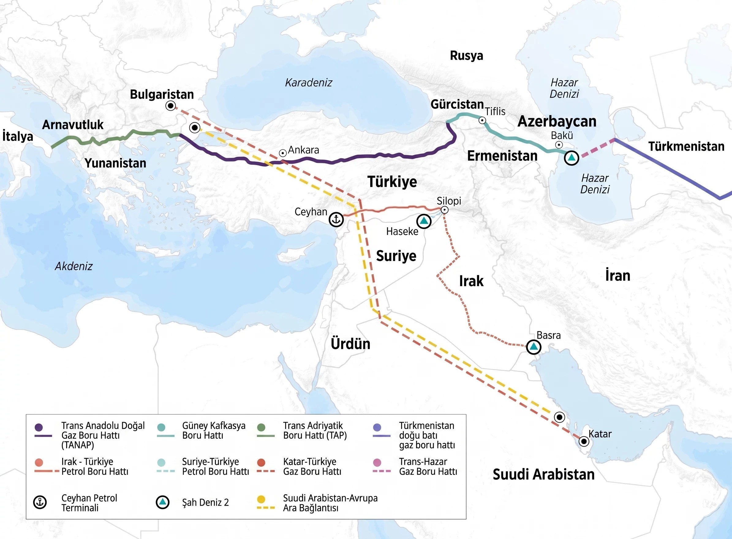 İran kaynaklı Hürmüz Boğazı geriliminin enerji piyasalarında oluşturduğu dalgalanma, Türkiye’nin Irak, Suriye, Körfez ve Hazar Havzasını Avrupa’ya bağlayan yeni hatlar üzerinden bölgesel enerji merkezi olma hedefini yeniden gündeme taşıdı.