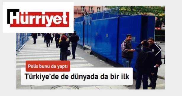 Hürriyet gazetesinin internet sitesi, polisin 1 Mayıs bahanesiyle ortalığı karıştıranlara yönelik Taksim'de tedbir amaçlı kullandığı portatif çelikten duvarı "Polis bunu da yaptı dünyada bir ilk" şeklinde duyurdu. Oysa aynı tip portatif duvarlar 2011 yılında İngiltere'deki gösterilerde kullanılmıştı.