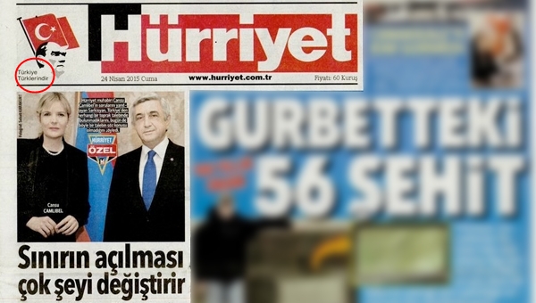1915 olaylarının 100. Yılı nedeniyle Ermenistan Cumhurbaşkanı Serj Sarkisyan’la bir röportaj yapan terör örgütü propagandacısı haline gelen Doğan medyasına bağlı Hürriyet gazetesi, Sarkisyan’ın açık suçlamalarına ve soykırım iddialarına çanak tuttu.