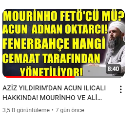 Müslümanların gündemi bu. Herkes bunu konuşuyor. Aziz Yıldırım, Mourinho Ali Koç ve Acun ılıcalı. Bunlardan banane ama Gazze konuşuluyor mu? Hayır unutuldu. Arakan konuşuluyor mu? Doğu Türkistan ne alemde? Gündem başka. Aziz Yıldırım diyor ki, "Acun Ilıcalı FETÖ'cü", o da ona FETÖ'cü diyor. Neredeyse Mourinho'da FETÖ'cü çıkacak. Yani yakında Mourinho'da FETÖ'cü çıkarsa şaşırmayın yani. Türk halkı nefsiyle savaşı maalesef kaybetti. Maalesef durum bu. Canlı yayında birbirlerine sövüyorlar. Diğer taraftan Okan Buruk karşı tarafa küfür ediyor. Futbolda herkes birbirine ana avrat sövüyor. Sırrını kimseye anlatmayın. Anlatacaksanız da gidip duvarla konuşun.
