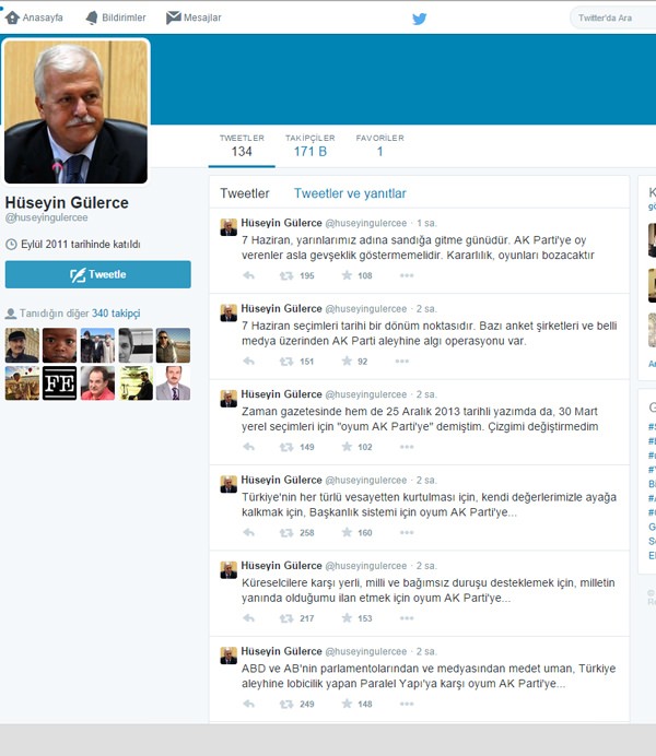 Hüseyin Gülerce 7 Haziran genel seçimlerinde oyunu hangi partiye vereceğini Twitter üzerinden gerekçeleriyle birlikte açıkladı.