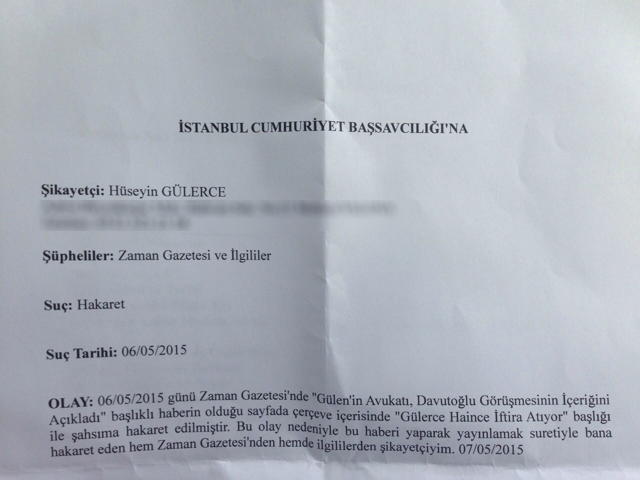Bugün İstanbul Cumhuriyet Başsavcılığına, hakaret gerekçesiyle Zaman sorumluları ve av. Nurullah Albayrak hakkında suç duyurusunda bulundum