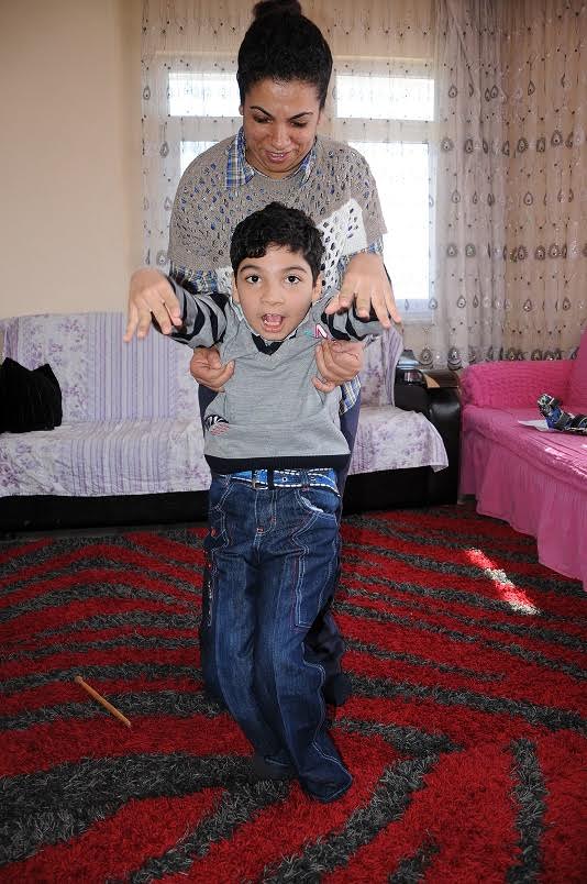 Doktorlar, daha önce annesinin borç parayla kendisine aldığı protez sayesinde duvara tutunarak da olsa yürüyebilen Hüseyin’in gelişme kaydettiğini söylüyor.