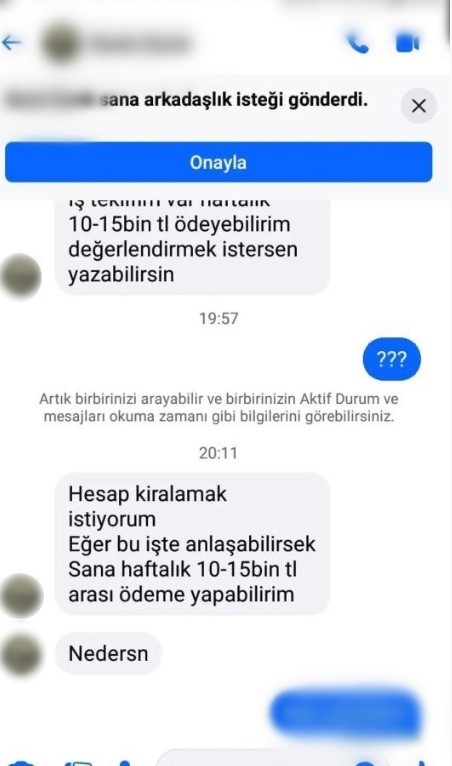 İnternet siteleri ve uygulamalar üzerinden dolandırıcılık faaliyetleri her geçen gün artıyor. Sosyal medya platformları ile illegal kumar ya da bahis üzerinden para aklamak isteyen dolandırıcılar, ‘Banka hesabınızı kiralayın, yüksek kazanç sağlayın' paylaşımları ile vatandaşların ilgisini çekmeye çalışıyor. Konya’da çay ocağında çalışan 45 yaşındaki Mustafa Ergin, yanına sürekli gelen arkadaşının ‘Benim hesabımda bloke var gelen parayı senin hesabından çekelim’ teklifini geri çevirmedi. Bunun üzerine arkadaşı Mustafa Ergin’in hesabından belirli günlerde 6 sefer kara para aktarımı yaptı. ATM’den parayı çekip arkadaşına veren Ergin’e arkadaşı 1 paket sigara parasını hediye olarak verdi. 'Banka hesabı kiralama' olarak bilinen dolandırıcılık ağına düşen Ergin hakkında hesabına gelen 6 işlem için 6 suç dosyası açıldı. 8 ay hapse giren Mustafa Ergin, şimdi ise diğer dosyalardan 10 yıl hapis cezası bekliyor.