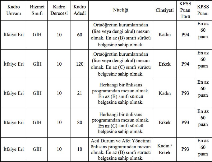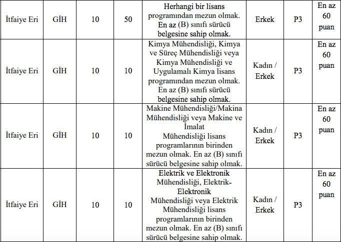 İstanbul Büyükşehir Belediye Başkanlığı bünyesinde 657 sayılı Devlet Memurları Kanununa tabi istihdam edilmek üzere itfaiye eri alımı gerçekleştiriyor. İBB personel alımı ilan ile en az lise mezunu olma ve KPSS’den en az 60 puan alma şartını arayor. İstanbul Büyükşehir Belediye Başkanlığı bünyesinde 657 sayılı Devlet Memurları Kanununa tabi olarak istihdam edilmek üzere; Belediye İtfaiye Yönetmeliği hükümlerine göre aşağıda unvanı, sınıfı, derecesi, adedi, nitelikleri, KPSS puan türü, KPSS taban puanı ve diğer şartları taşımak kaydıyla münhal 541 adet İtfaiye Eri kadrosu için personel alımı yapacaktır.