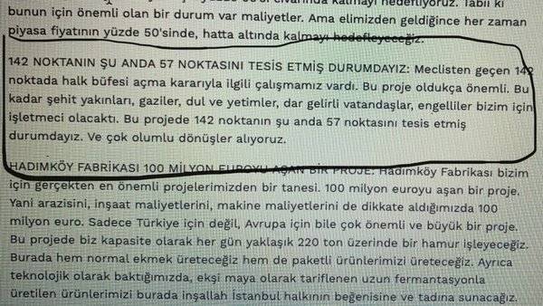 AK Parti döneminde İstanbul Büyükşehir Belediyesi iştiraki Halk Ekmek (İHE) A.Ş.'nin; 2 bin 945 dağıtım noktasının bulunduğu öğrenilirken 2019 yılında 536 adet büfe ve 2 bin 409 zincir market ve bakkallarla halk ekmek vatandaşa ulaştırıldı.