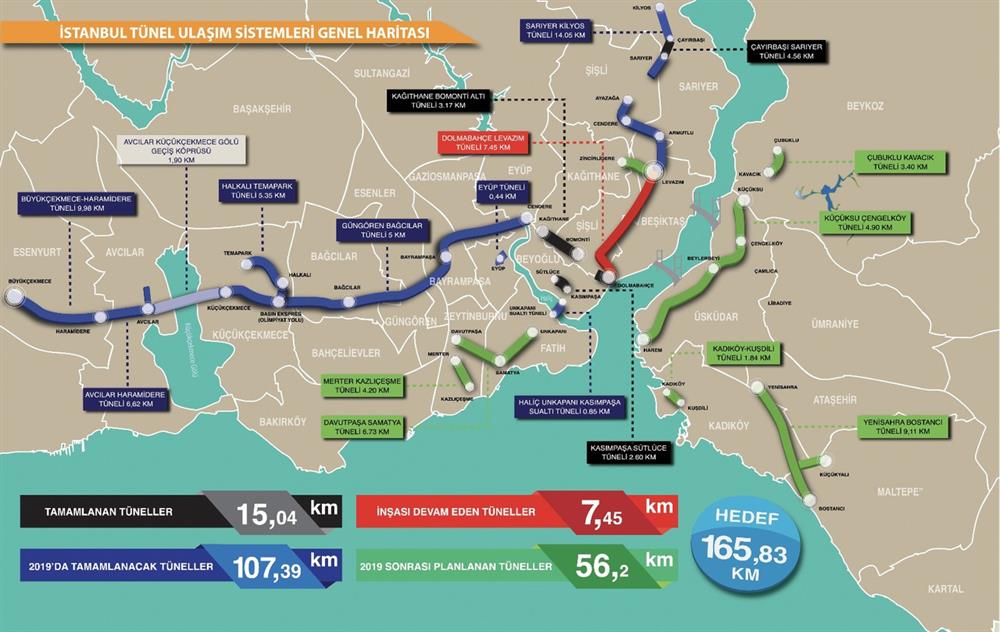 İstanbul Büyükşehir Belediyesi'nden yapılan açıklamaya göre, Büyükçekmece'den Sarıyer'e, tüneller, bağlantı yolları, kavşaklar ve köprülerle yaklaşık 140 kilometrelik alternatif bir ulaşım güzergahının hayata geçirileceği belirtilerek, günde ortalama 150 bin sürücünün kullandığı Kağıthane- Piyalepaşa, Bomonti-Dolmabahçe ve Sarıyer-Çayırbaşı tünelleri ile entegre olması planlanan yeni tünel sayesinde "1,5 saatlik yolun 10 dakikaya ineceği" ifade edildi.