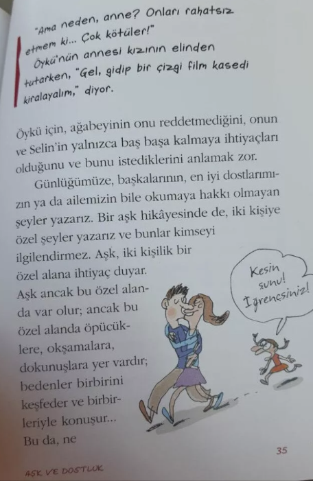"Aşk ve Dostluk" adlı kitapta, çiftler arasındaki cinsel temas açık ifadelerle küçücük çocuklara anlatıldı: