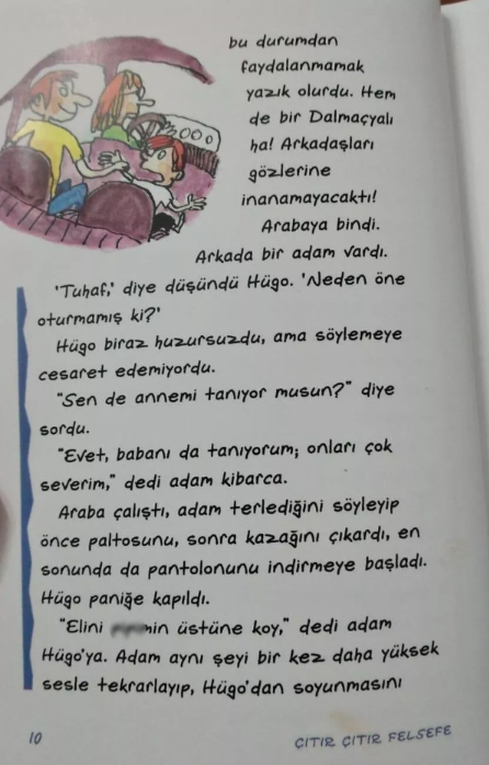 Kitabın diğer bir bölümünde ise bir çocuğun cinsel tacize uğradığı anlar detayları ile tasvir edildi.