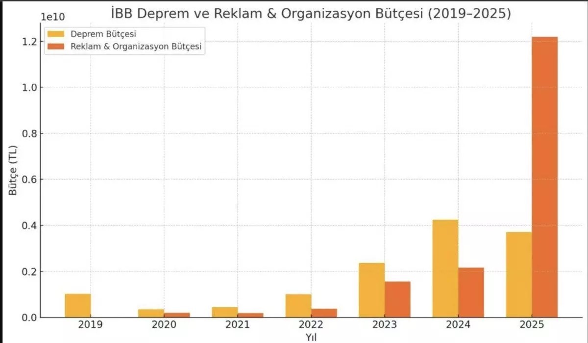 Bu tartışmalar arasında İBB'nin bu dönemde deprem hazırlık bütçesi ve reklam bütçelerinin karşılaştırıldığı bir grafik ortaya çıktı.