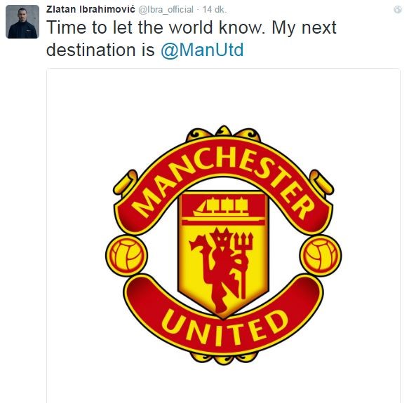 İsveçli yıldız Zlatan İbrahimovic, yeni sezonda Premier lig ekiplerinden Manchester United'da olacağını duyurdu.